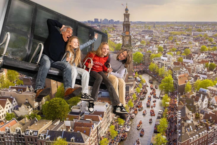 Vlieg een uur lang als een vogel over het Hollandse landschap. In de vernieuwde 5D flight experience THIS IS HOLLAND ruik je de bloemen, voel je de wind en zweef je over het water.