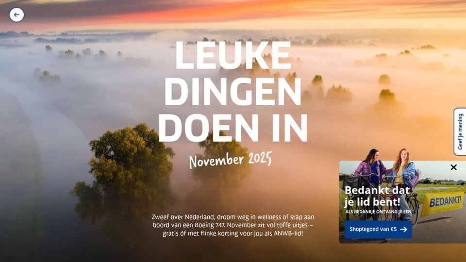 Zweef over Nederland, droom weg in wellness of stap aan boord van een Boeing 747. November zit vol toffe uitjes – gratis óf met flinke korting voor jou als ANWB-lid!