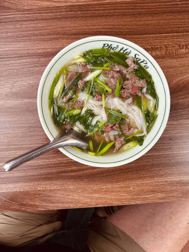 Een uur later staan we in Sapa, een stad die balanceert tussen adembenemend en aangeharkt. Tussen hotels en restaurants wacht onze gids Peng ons op: Hmong-vrouw, zwanger van haar derde kind. Uitgehuwelijkt, nooit naar school geweest, maar vloeiend in Engels. Geleerd van toeristen en een cursus in coronatijd.