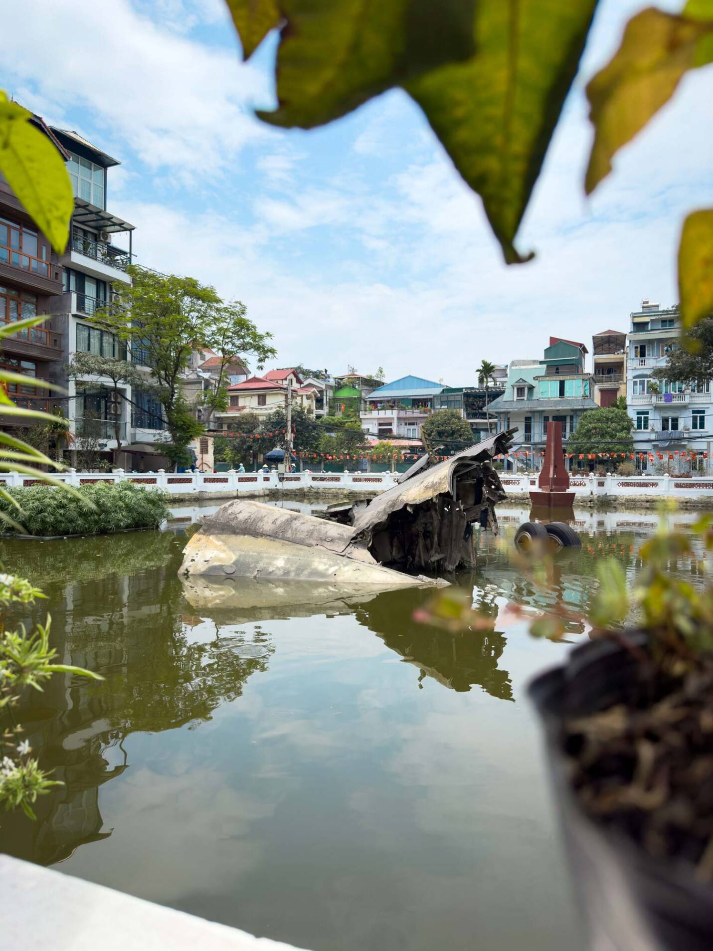 Even later stoppen we bij een meertje met een vliegtuigwrak erin. ‘Amerikaanse bommenwerper', zegt hij. Verplaatst, zodat schoolkinderen er dagelijks langsfietsen. Zijn toon is luchtig. Niet vergeten, gewoon onderdeel van het dagelijks decor.