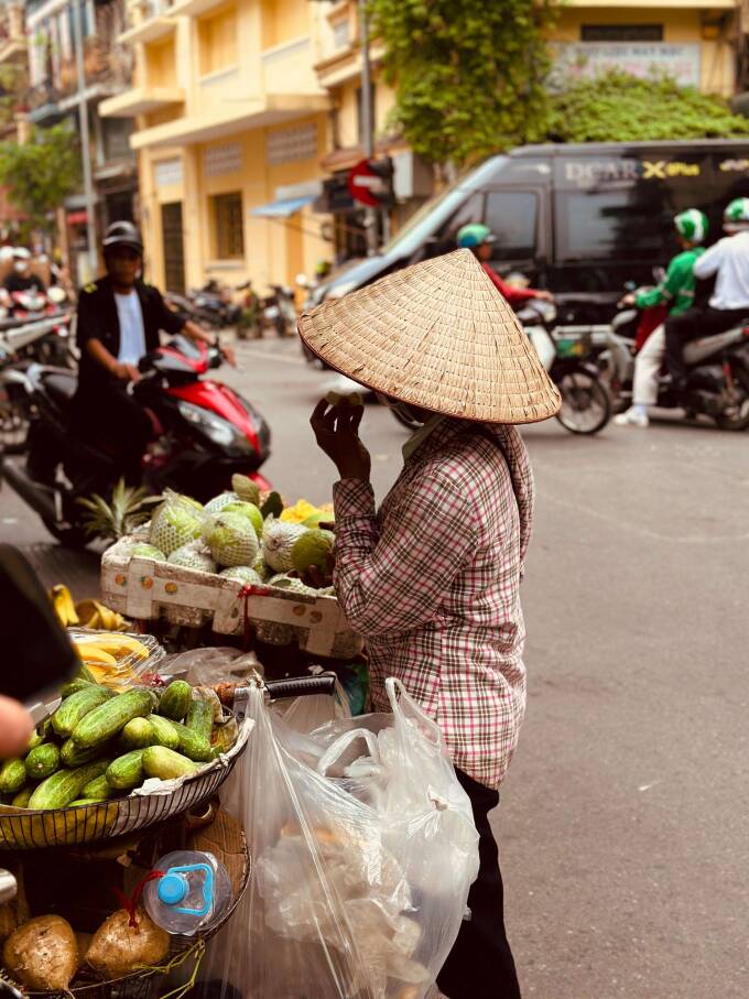Hanoi zelf is een paradox. In smalle straatjes wemelt het van marktkramen, verkeerschaos en serene tempels. Alles bestaat naast elkaar, door elkaar, en twee keer per dag rijdt er zelfs een trein dwars door een woonstraat. Geen hekken, geen paniek: mensen schuiven gewoon hun stoeltje opzij en drinken verder.