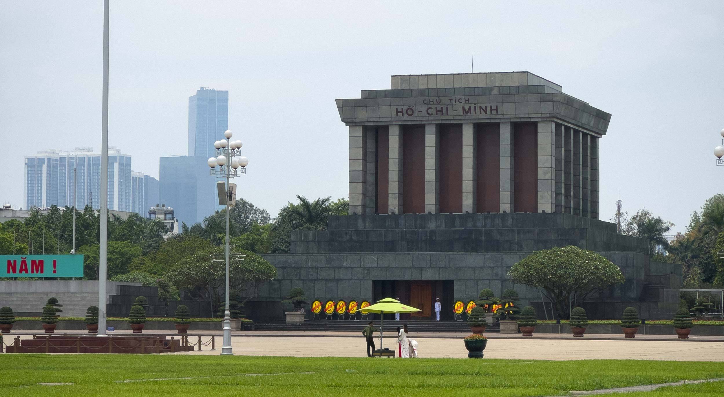 Op het perron wacht geen routine, maar een feest. Vijftig jaar hereniging van Noord- en Zuid-Vietnam. Vrolijke jonge mannen in uniform zwaaien met vlaggetjes alsof elke reiziger persoonlijk wordt onthaald.