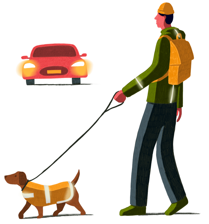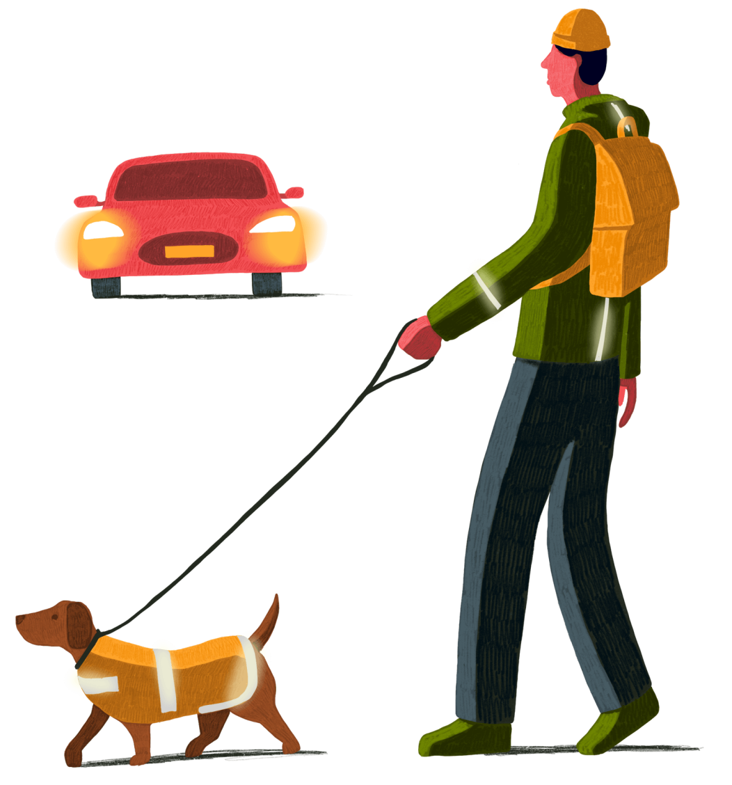 ‘Mensen moeten zich ervan bewust zijn dat ze als voetganger slecht zichtbaar zijn, zeker als ze donkere kleding aan hebben en op donkere wegen lopen. Ook de hond, zeker met een donkere vacht, is slecht zichtbaar. Voor beiden is reflectie belangrijk’, vertelt ANWB-belangenbehartiger Jeanette van 't Zelfde.