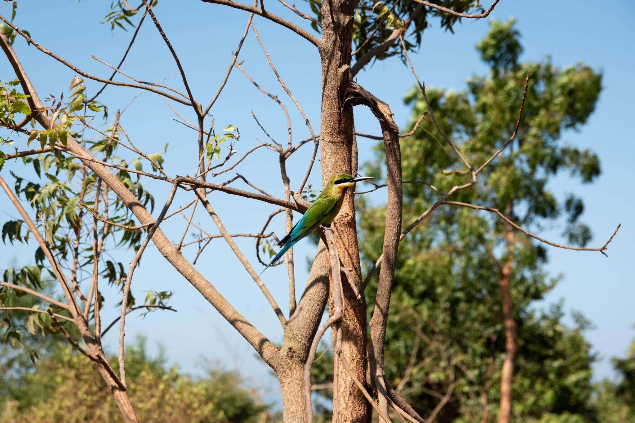Het duurt niet lang of we spotten tientallen vogels, een beer, apen en – als kers op de taart – een luipaard die nonchalant en traag over een zandpad wandelt.