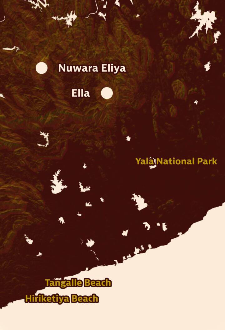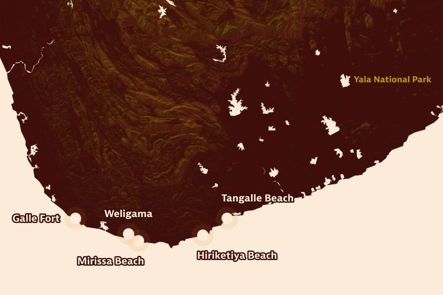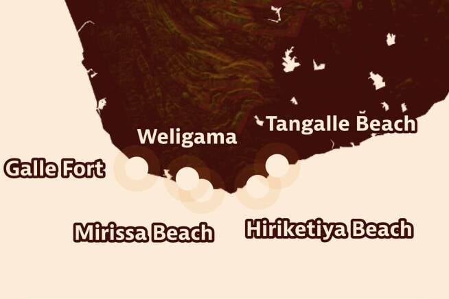 Aan de zuidkust vind je meerdere mooie plekken. We genieten van de gouden zandstranden Tangalle Beach, Hiriketiya Beach en Mirissa Beach, de goede golven en hippe eettentjes. De reis eindigt in het surfplaatsje Weligama, een relaxte uitvalsbasis voor een bezoek aan het charmante Galle Fort.