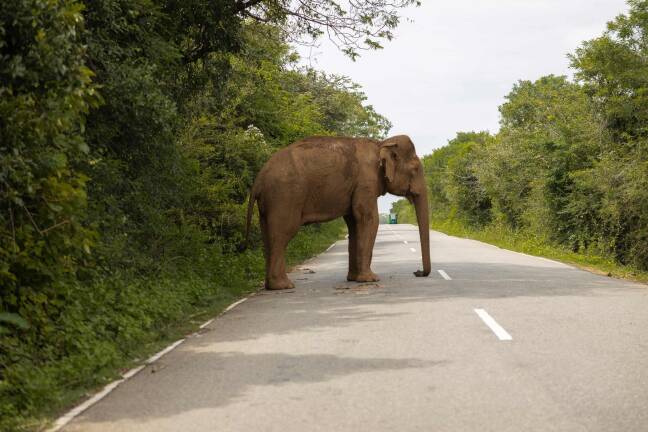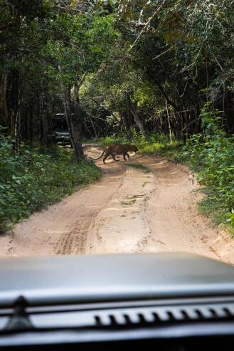 De weg naar de zuidkust gaat dwars door Yala National Park, een van de grootste natuurgebieden van Sri Lanka. Geen hekken of barrières hier; de dieren hebben vrij spel.