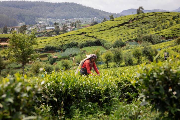 We lopen een deel van de Pekoe Trail, een 300 kilometer lange wandelroute door de centrale hooglanden van het eiland. Al slingerend om de theevelden rondom de stad Nuwara Eliya kan het harde werken van de plukkers je niet ontgaan.
