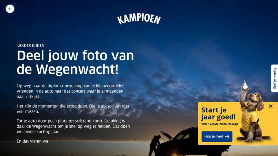 Uit alle inzendingen selecteert* de redactie foto’s die een plek krijgen in de eerstvolgende Kampioen. Laadt het formulier niet? Probeer de pagina te verversen.