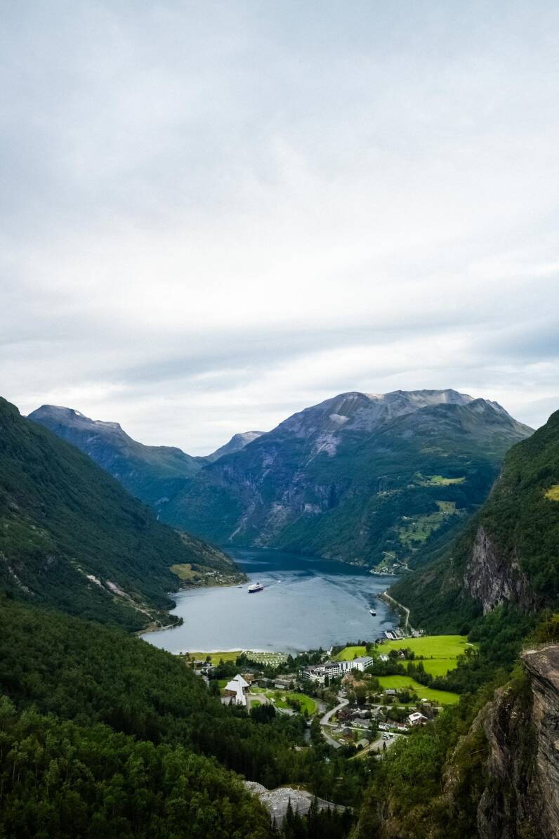 Daarna rijden we met de auto verder in noordelijke richting naar het dorpje Stordal. Onderweg komen we langs de iconische Geirangerfjord, waar je vanaf de weg op verschillende plekken waanzinnige uitzichten hebt.