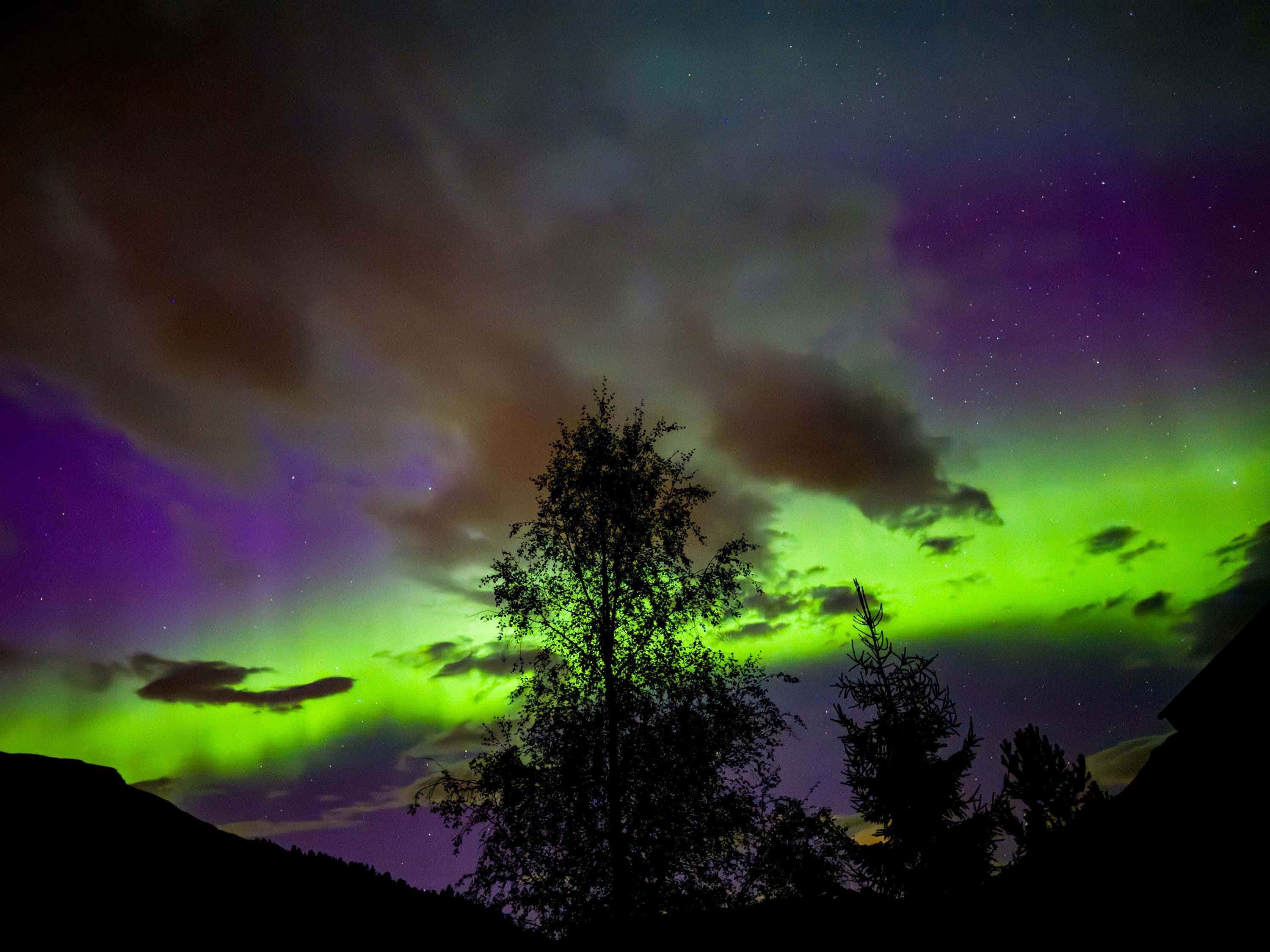 In deze periode – half september is nog niet ‘het seizoen’ – hebben we echt geluk dat we het Noorderlicht zien. De eerste keer weet ik niet wat me overkomt.