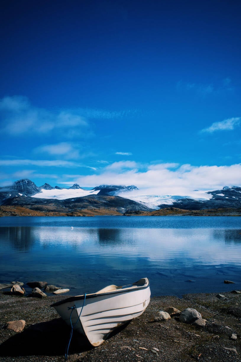 Het is 18 graden en zonnig, terwijl in de verte de sneeuw schittert. Precies dat contrast maakt Noorwegen zo bijzonder.