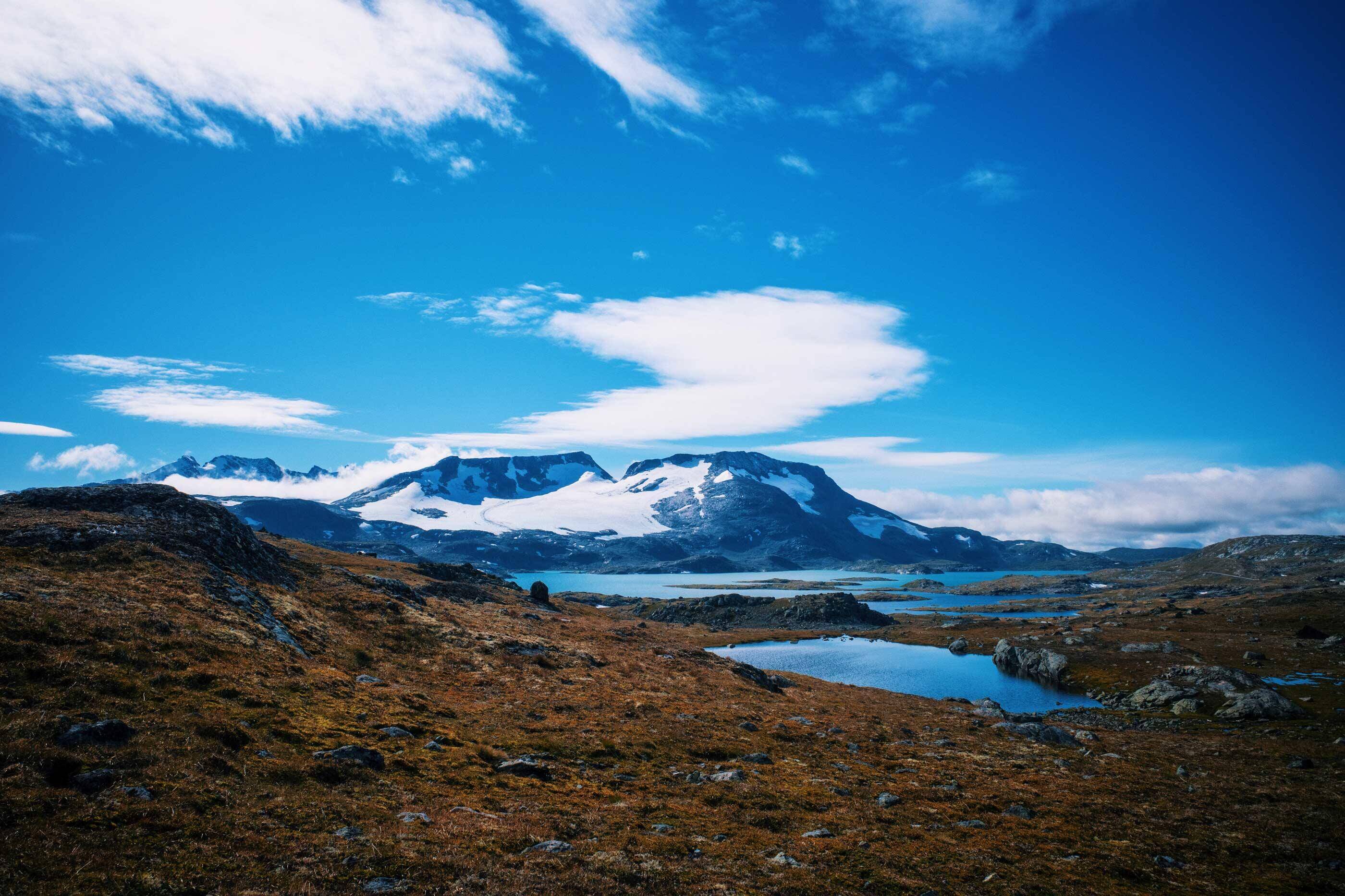 Noorwegen: 18 graden en zonnig, met in de verte sneeuw