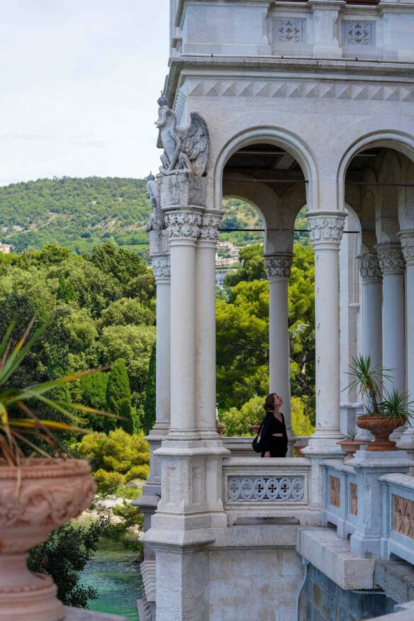 Onze nieuwsgierigheid wint het toch. Kasteel Miramare is namelijk een tastbaar overblijfsel uit het Habsburgse verleden. Het werd gebouwd als zomerverblijf voor Maximiliaan van Habsburg en zijn vrouw Charlotte van België.
