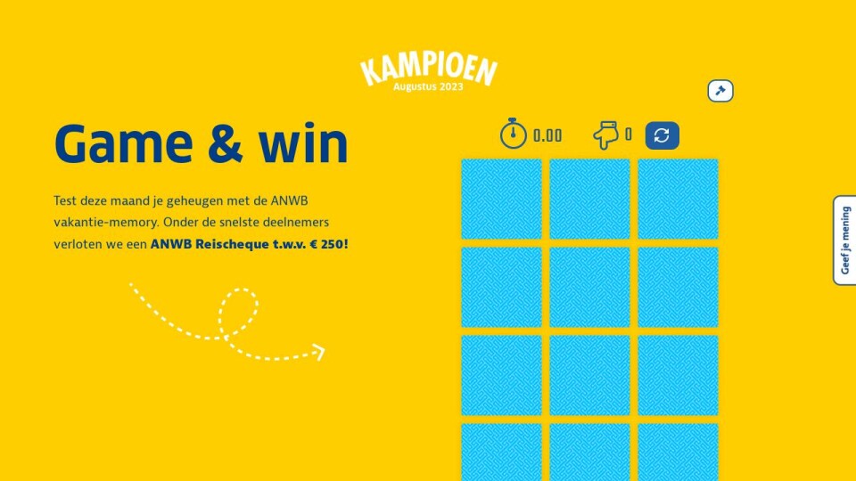 Test deze maand je geheugen met de ANWB vakantie-memory. Onder de snelste deelnemers verloten we een ANWB Reischeque t.w.v. € 250!