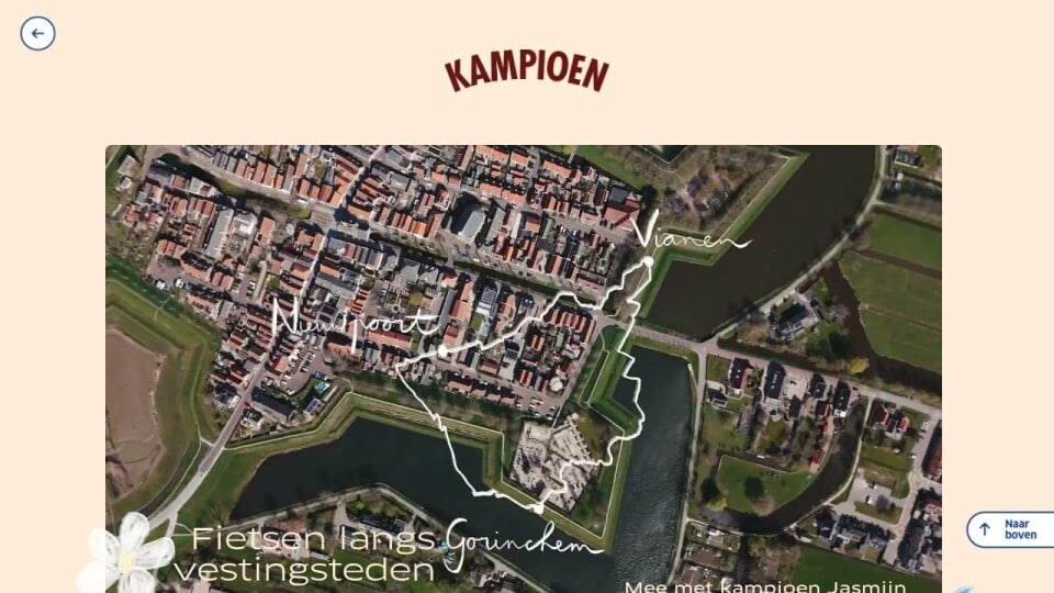 Lente! Kampioen Jasmijn van der Zwaan fietst door het bloesemrijke rivierenland. Tussen de Lek, Linge en Waal vormen vestingsteden Nieuwpoort, Gorinchem en Vianen het decor van een prachtige fietsroute.