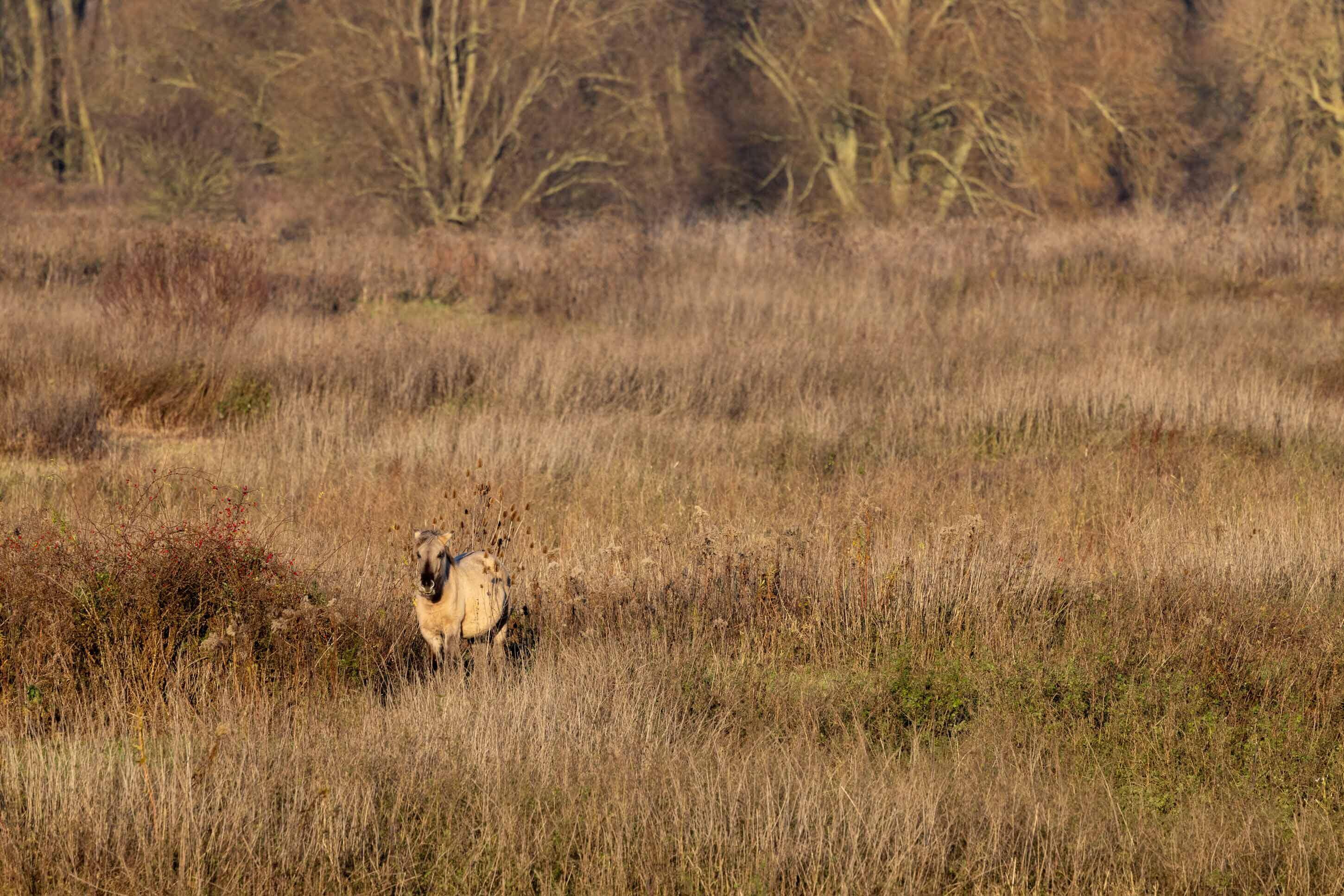 Hier struinen wilde konikpaarden door graslanden en uiterwaarden. Stoere dieren met een robuuste bouw en gehuld in een dikke wintervacht. Ze zijn kleiner dan de meeste paardenrassen en doen qua formaat denken aan pony’s. Ze leven in hechte kuddes met een strikte rangorde, waarbij de oudste merries de leiding hebben.