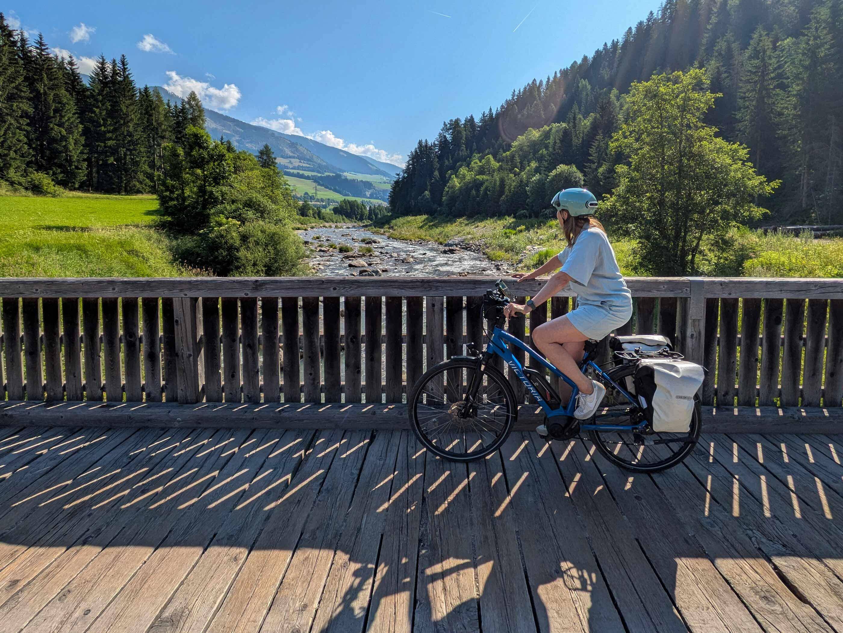 Zo klinkt het als we via de overdekte brug Sillian uitrijden. Onze fietsvakantie is begonnen. De lucht is fris, de benen ook. Rechts zetten de Dolomieten hun tanden in de dag, links kabbelt de Drau. Daartussen zwieren wij bergaf onder geurende naaldbomen.
