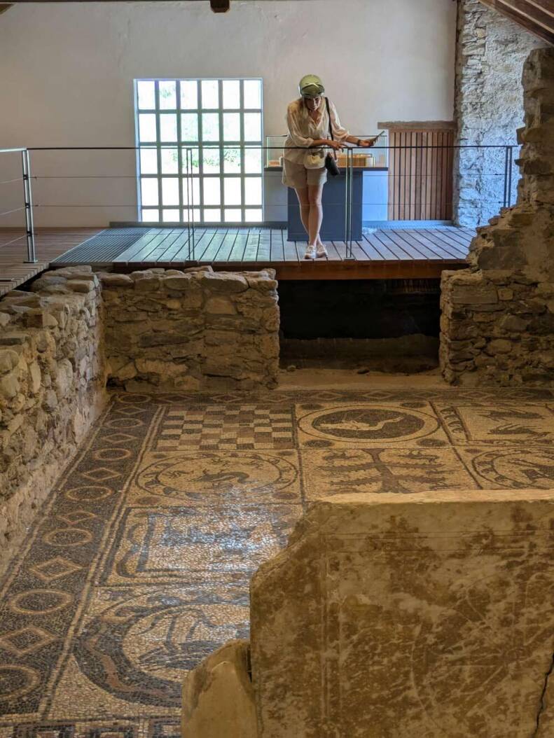 Langs de hele route staan Romeinse verwijzingen - die gasten zijn werkelijk óveral geweest. Op dag drie bezoeken we Römermuseum Teurnia: een Romeins stadje op een heuvel, met een museum en resten van baden, bronnen en stadsmuren. Indrukwekkend is de mozaïekvloer uit de vroegchristelijke kerk met een ooievaar als eyecatcher. Zo’n vloertje willen wij ook wel in de badkamer.