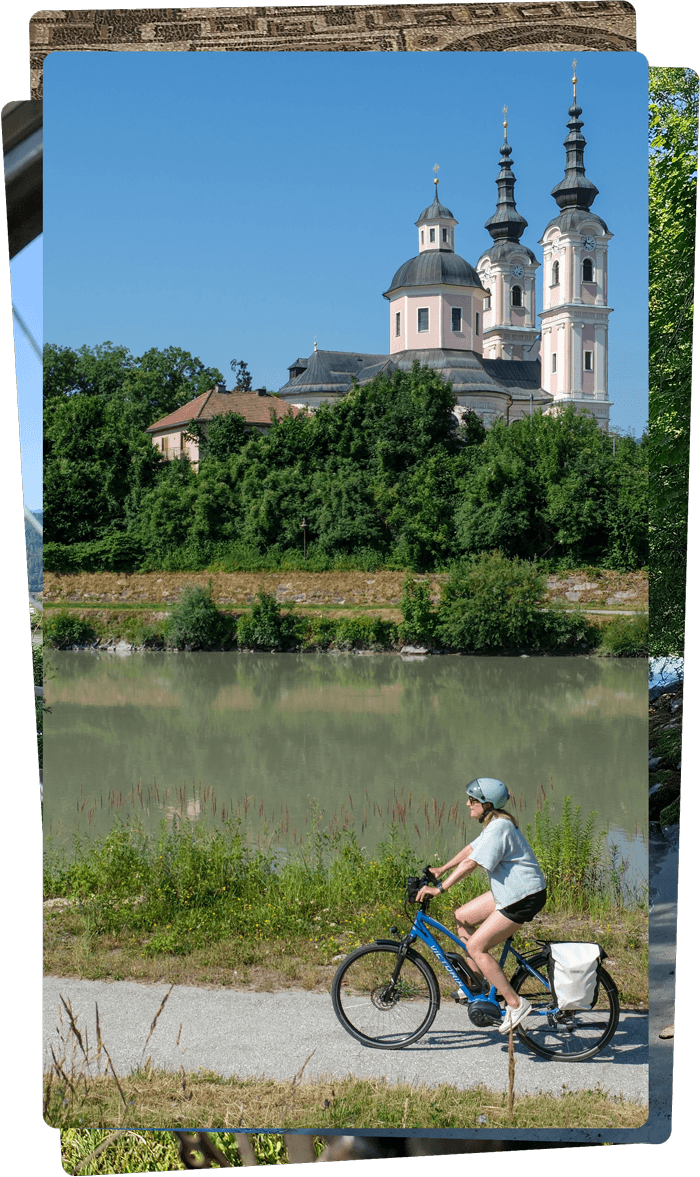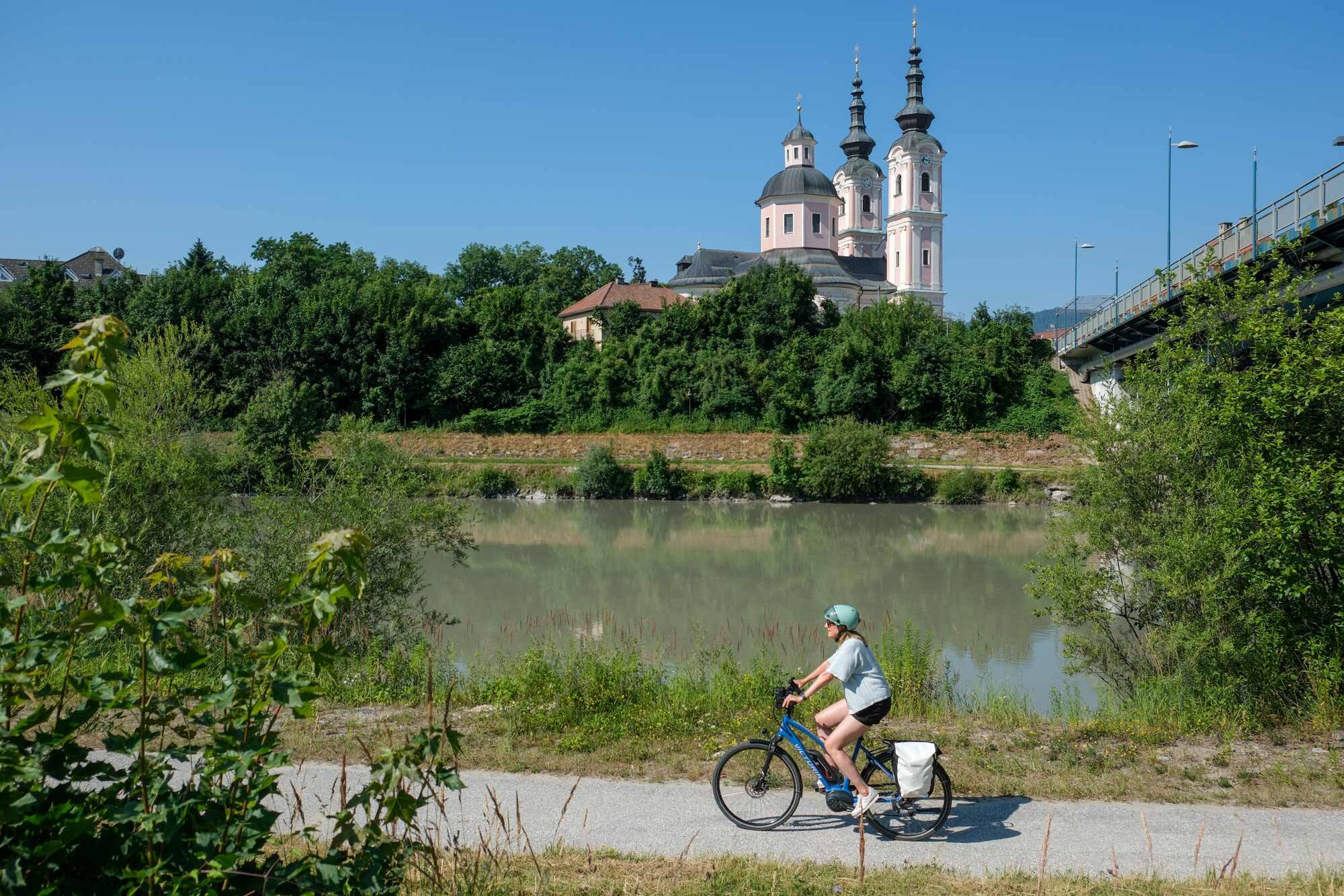 ‘We fietsen dicht langs de Drau, die verkleurt van Curaçao Blauw naar Matcha Latte’
