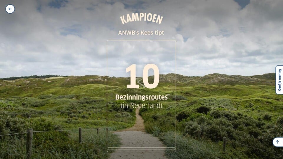 In het verleden heeft Kees samen met recreatieve- en natuurorganisaties de nodige wandelpaden ontwikkeld. Bij ANWB werkt hij onder meer aan aantrekkelijke en toegankelijke wandel- en fietsroutes. Zelf begint Kees de dag al dertien jaar met een wandeling van een uur en ook zijn vakanties worden wandelend ingevuld.