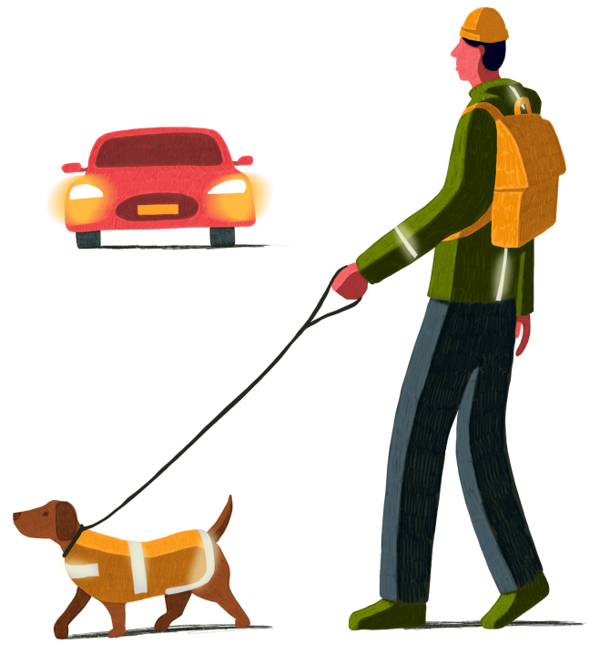 ‘Mensen moeten zich ervan bewust zijn dat ze als voetganger slecht zichtbaar zijn, zeker als ze donkere kleding aan hebben en op donkere wegen lopen. Ook de hond, zeker met een donkere vacht, is slecht zichtbaar. Voor beiden is reflectie belangrijk’, vertelt ANWB-belangenbehartiger Jeanette van 't Zelfde.